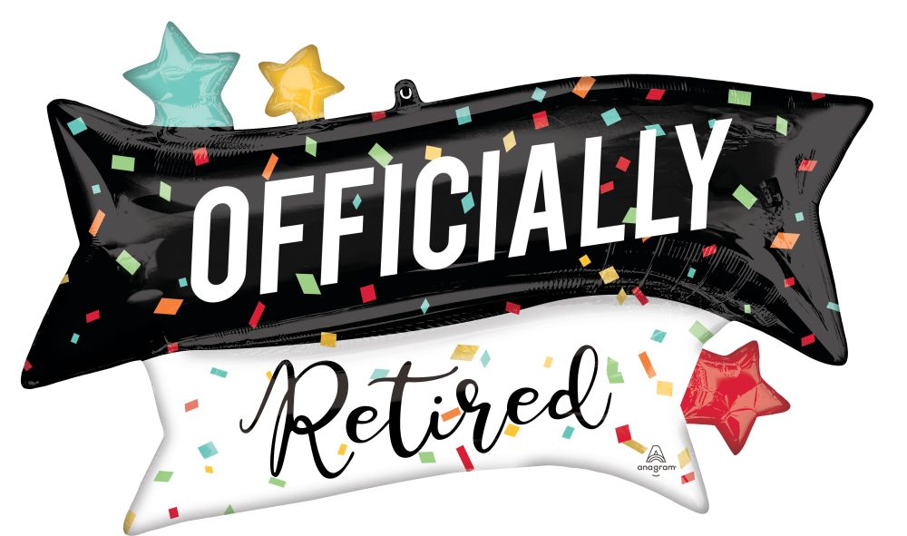 Continue shoppingAccent your retirement themed party with this 38" foil balloon featuring colorful text “Officially Retired” and multicolored confetti print. This balloon looks good as a stand along balloon or a part of a balloon bouquet.